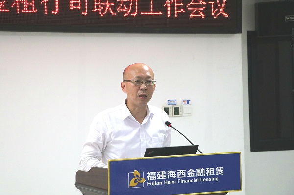 會議伊始,海西金租總裁潘青松致歡迎詞。潘總裁向與會嘉賓介紹了海西金租開業(yè)以來的經(jīng)營管理情況以及行司聯(lián)動工作取得的進(jìn)展,他表示,作為廈門銀行集團(tuán)化、綜合化經(jīng)營的第一步,海西金租自開業(yè)以來得到了大股東的傾情關(guān)心和鼎力支持,得以穩(wěn)健發(fā)展,也希望在未來海西金租和各分行能發(fā)揮各自優(yōu)勢,進(jìn)一步協(xié)同發(fā)展,不斷深化合作,推動行司共贏。