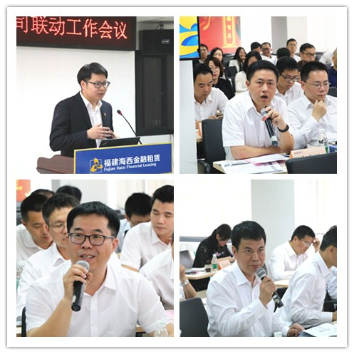 海西金租副總裁李紅承系統(tǒng)介紹了融資租賃業(yè)務(wù)特色、優(yōu)勢及開展行司聯(lián)動的構(gòu)想,總行公司部總經(jīng)理助理蔡智謙及泉州分行副行長謝曉明分別對行司聯(lián)動工作機(jī)制、考核機(jī)制及已取得的經(jīng)驗(yàn)成效等進(jìn)行了宣講和分享。隨后,與會人員展開了熱烈的交流討論,共同謀劃行司聯(lián)動發(fā)展新篇章。