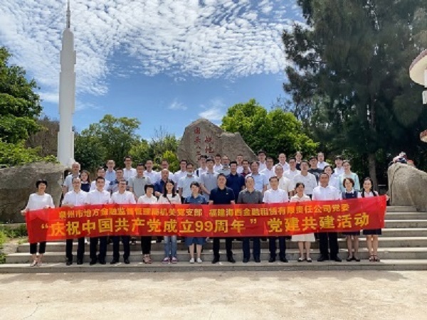 為紀(jì)念中國(guó)共產(chǎn)黨成立99周年,接受紅色歷史文化洗禮,進(jìn)行黨員黨性教育,7月1日上午,海西金租黨委與黨建共建單位泉州市地方金融監(jiān)督管理局機(jī)關(guān)黨支部聯(lián)合開展“慶祝中國(guó)共產(chǎn)黨成立99周年”黨建共建活動(dòng)。泉州市地方金融監(jiān)督管理局黨組成員、副局長(zhǎng)朱亮,海西金租黨委書記、總裁潘青松,以及兩個(gè)單位50多名黨員、入黨積極分子前往晉江市創(chuàng)新創(chuàng)業(yè)創(chuàng)造園、圍頭八二三戰(zhàn)地公園考察學(xué)習(xí)。