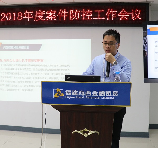 12月27日下午,海西金租召開2018年案件防控工作會議,目的是傳達貫徹省市監(jiān)管機構案件防控工作會議精神,全面總結公司2018年案防工作、面臨的嚴峻形勢以及研究部署2019年度全司案防工作重點。潘青松總裁、朱丹監(jiān)事長、公司全體員工參加會議,會議由劉素霞副總裁主持。