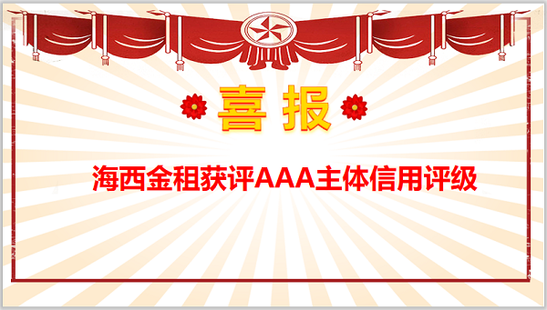 喜報(bào) | 海西金租獲評AAA主體信用評級