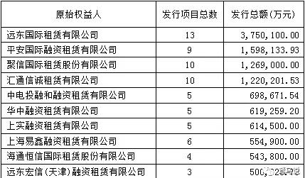 表2:發(fā)行企業(yè)ABS排名前十位融資租賃公司